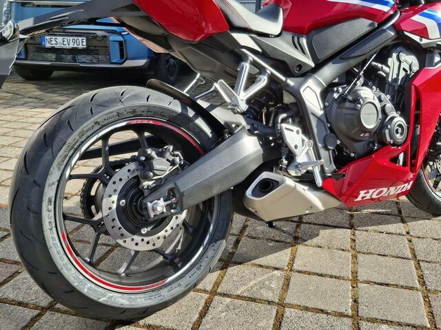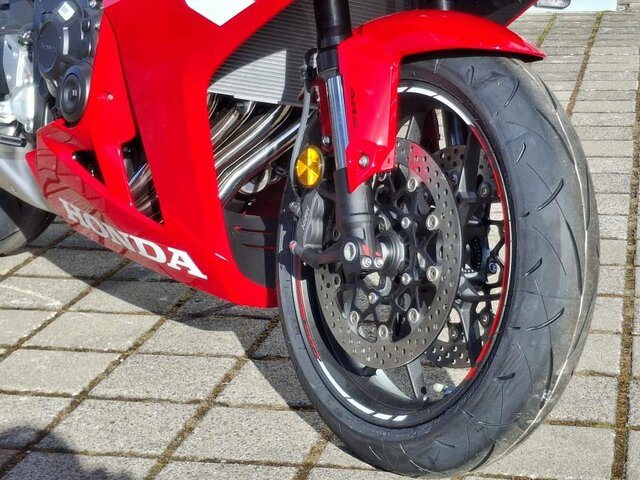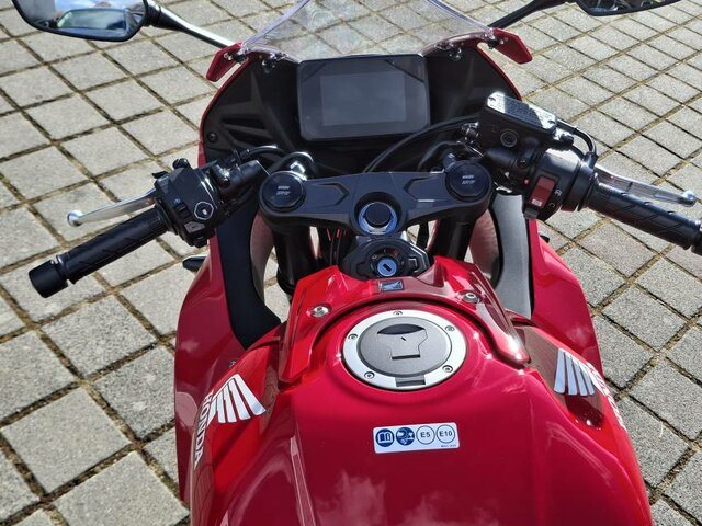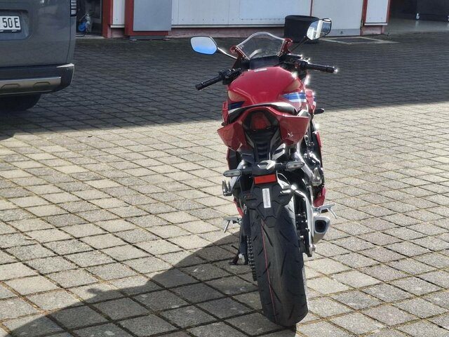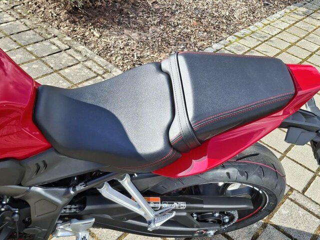 Der DOHC-Reihenmotor mit vier Zylindern und 16 Ventilen leistet in der Spitze 70 kW/94 PS bei einer Drehzahl von bis zu 12.000 U/min. Das Drehmoment von 64 Nm sorgt für reichlich Beschleunigung bei der Kurvenausfahrt. Für Fahrer mit A2-Führerschein ist eine Drosselung auf 35 kW möglich, die sich nach dem Erwerb des A-Führerscheins aufheben lässt. Und da Leistung Kontrolle braucht, verhindert die Anti-Hopping-Kupplung das Blockieren des Hinterrads bei starkem Bremsen und Herunterschalten.